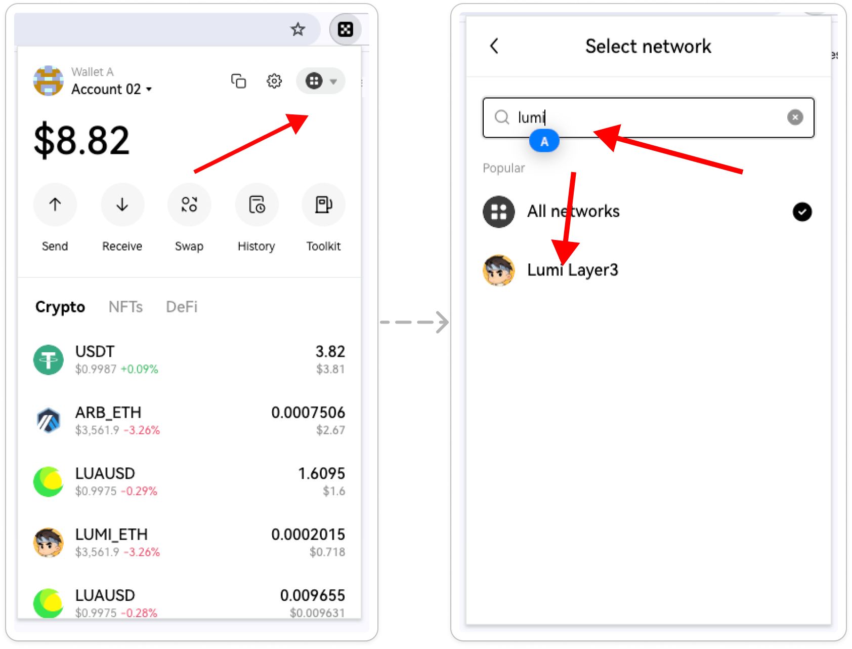 Here we use OKX Wallet to demonstrate how to join the Lumi Layer3 network.
