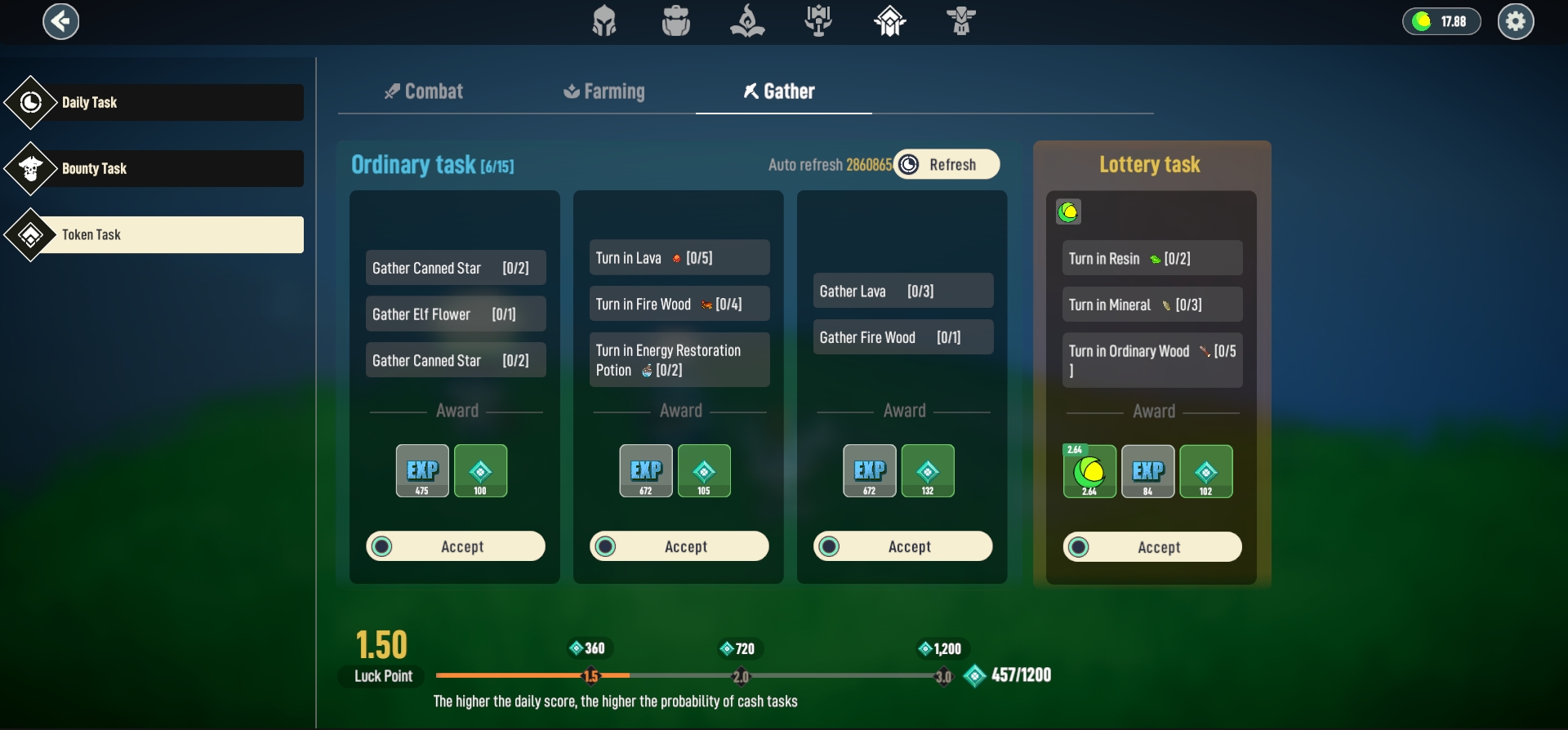 <figure><img src="https://1398927414-files.gitbook.io/~/files/v0/b/gitbook-x-prod.appspot.com/o/spaces%2FcAOX4apc4364XN4NRL1E%2Fuploads%2F7oATo5Q1r43I5qLqFcPY%2Fimage.png?alt=media&#x26;token=2c3e0cd1-93c9-4744-82dd-1f83a0722dfa" alt=""><figcaption><p>Daily Leader Board, reward with Lottery Task Tickets</p></figcaption></figure>