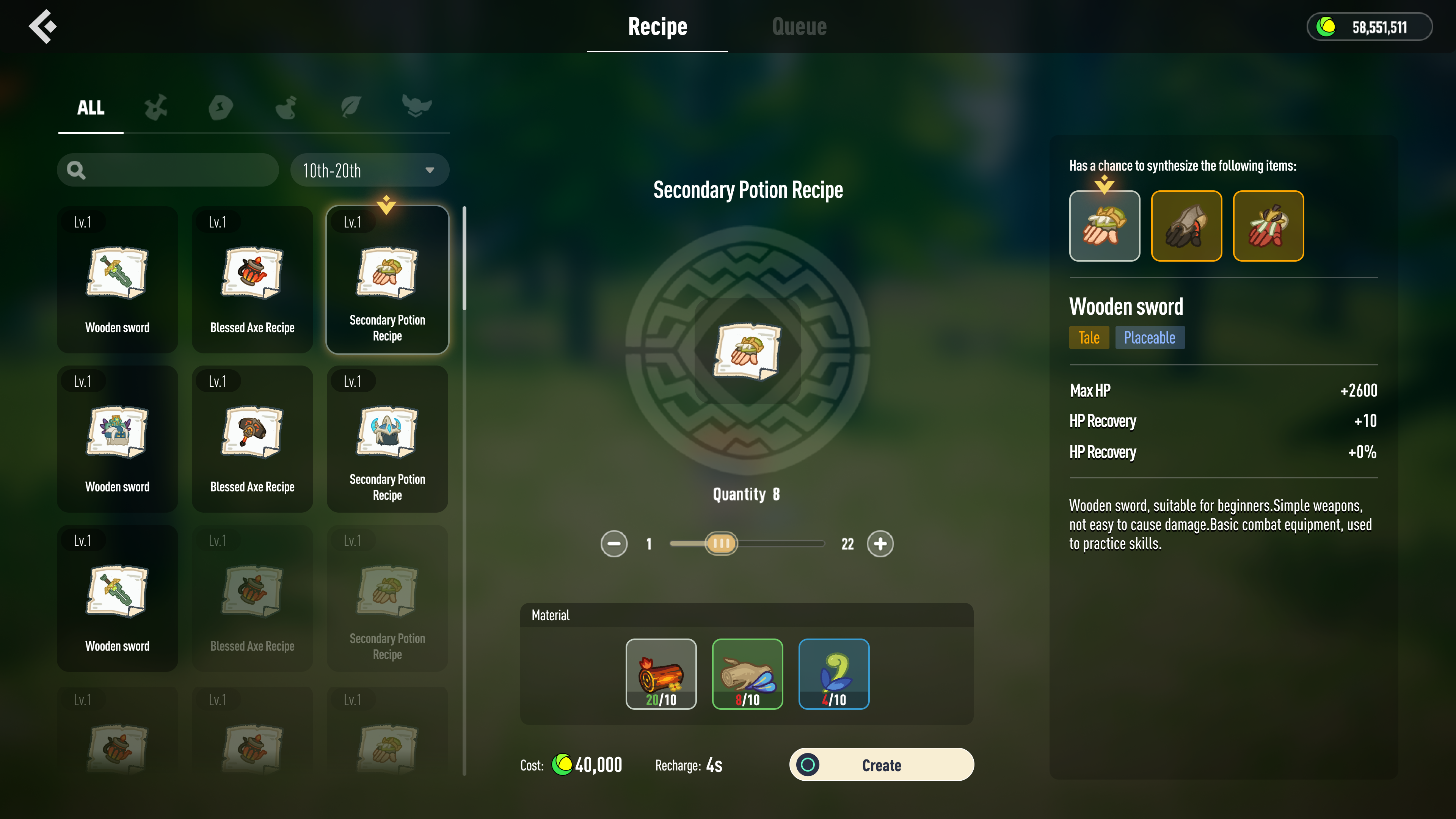 The Crafting System allows players to make more powerful equipment, weapons, materials, etc. The higher quality the more difficult to craft/compose.